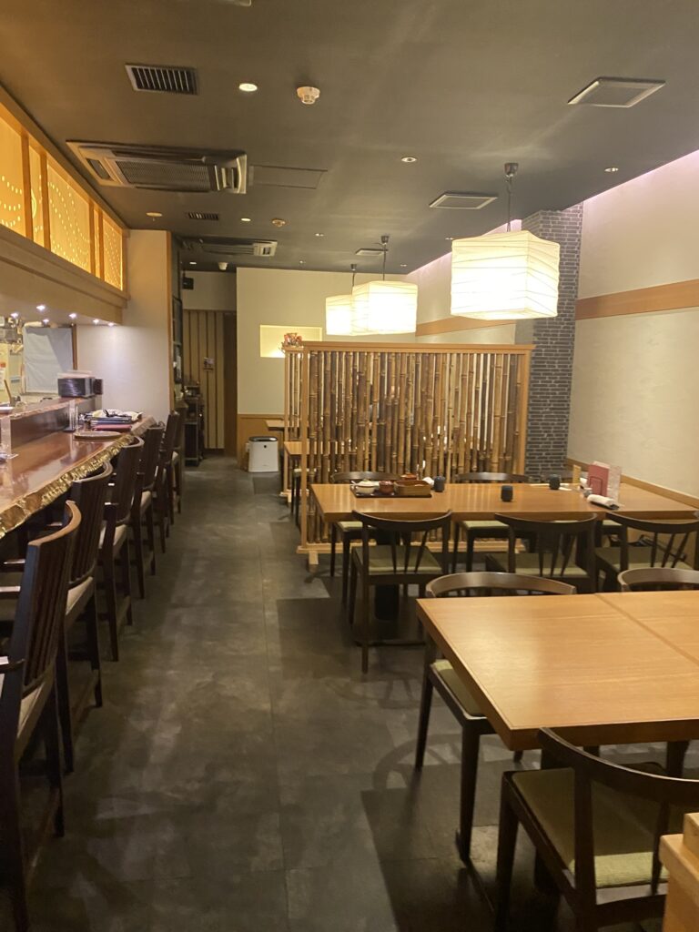 1階は職人さんの技を間近で見られるオープンカウンターが主役。2階には完全個室や最大16名までの団体席もあり、接待やお祝い事にもぴったりな雰囲気です。